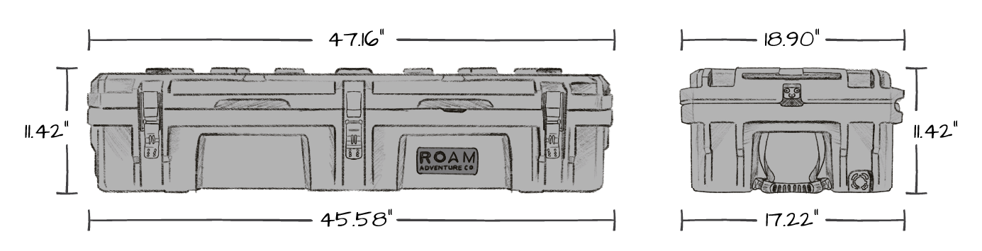 The ROAM 95L Rugged Case is a heavy-duty storage case that comes in 4 color options and is ideal for storing your long items such as chairs, shovels, axles, recovery gear or just adding more storage to any vehicle. Rugged storage that seamlessly mounts the roof of any vehicle. This premium case features a durable LLDPE shell, our proprietary Lid-Lifts, Nylon rope handles, steel lockable latches, and a dust/water resistant gasket seal that makes sure your gear always stays protected no matter the weather or terrain. The threaded inserts in the lid give you the ability to add a lid organizer or molle panel to take your organization to the next level. Having an interlocking design makes stacking and pairing simple no matter the amount of gear you carry.