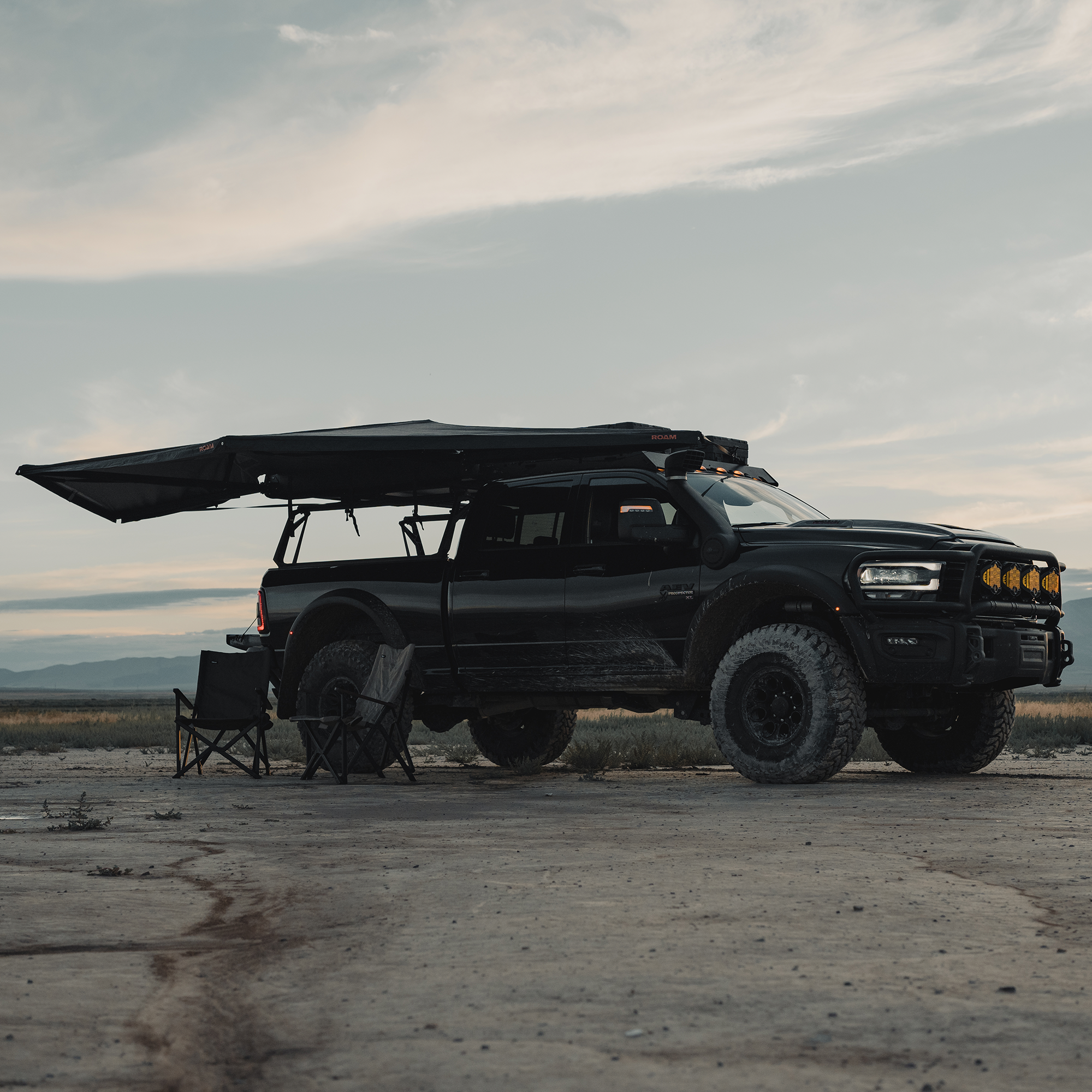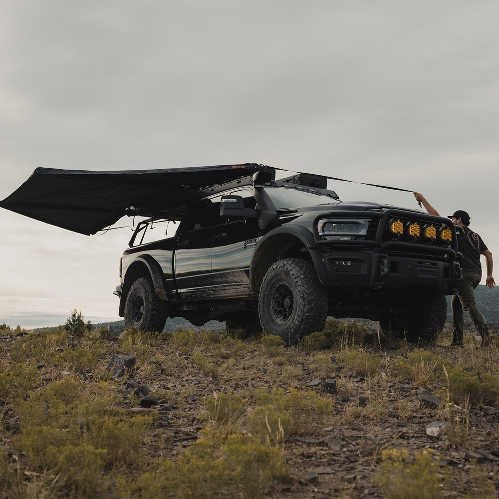 The Arc 180 Awning, is designed for those in pursuit of shade and shelter from the worst conditions. With an expansive 180-degree coverage and a substantial 21-foot extension (equivalent to the length of a 4-door Toyota Tundra), this awning offers a significant area of protection. Remarkably, it transforms into a compact 7-foot package that effortlessly mounts on vehicles of various sizes, making it a practical and space-efficient choice. If your vehicle features an upward-swinging trunk lid, the 180 Awning is a fitting selection.